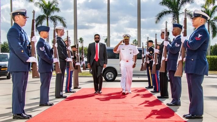 El 5 de diciembre pasado, Irfaan Ali visitó el Comando Sur en Guyana y se reunió con su nuevo comandante, el almirante de la Armada Alvin Holsey, para discutir la asociación de defensa bilateral. Cabe destacar que el mandatario egresó con honores del Centro William J. Perry de Estudios Hemisféricos de Defensa.