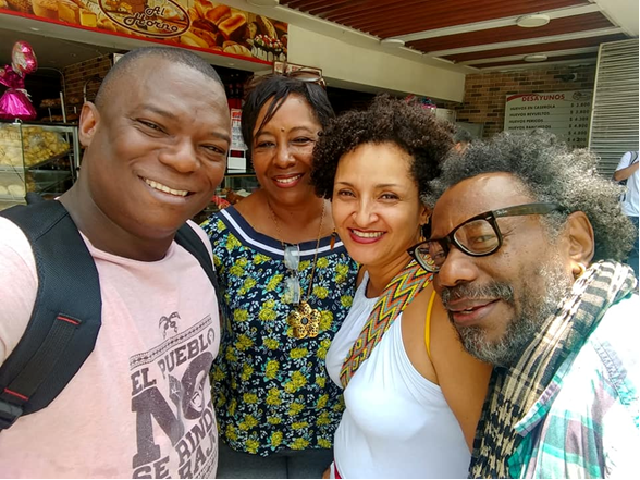 (Foto del pintor Elbar Castillo…, en su Taller Mandiga de Colombia, con Arleison Arcos Rivas y dos amigas)