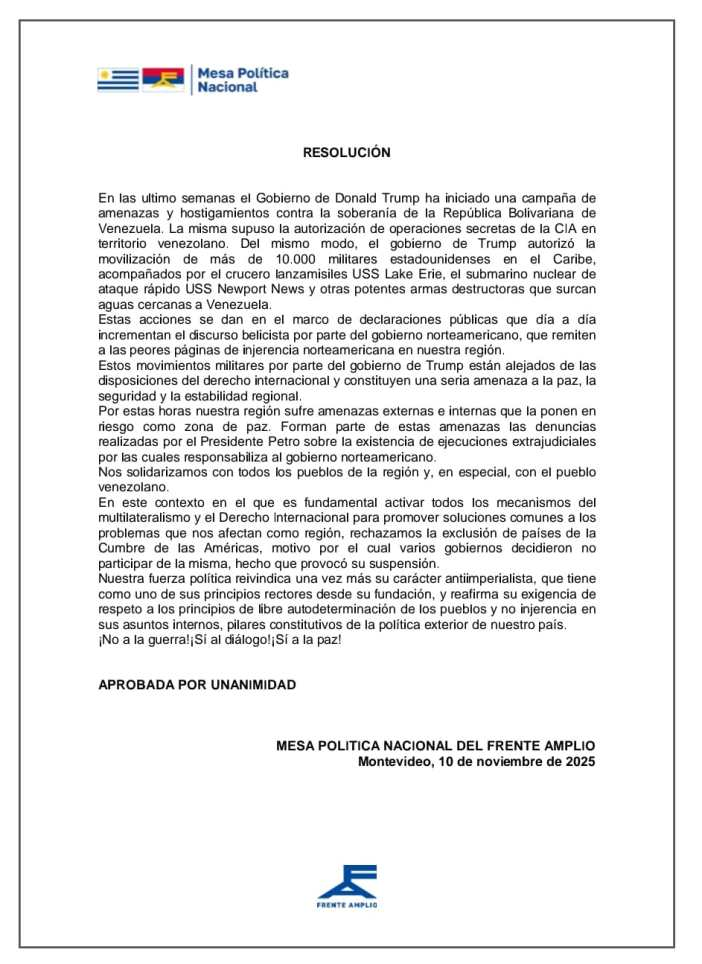 En el caso de Venezuela, el ingreso del portaviones USS Gerald Ford a la zona jurisdiccional del Comando Sur para sumarse al despliegue naval estadunidense en el mar Caribe, profundiza la campaña de presión política, militar y psicológica que, con la mira puesta en el petróleo, el gas natural y otras materias primas geoestratégicas (oro, hierro, bauxita y coltán, una mezcla mineral utilizada en baterías eléctricas), busca generar un golpe de Estado contra el gobierno de Nicolás Maduro mediante un quiebre militar interno.