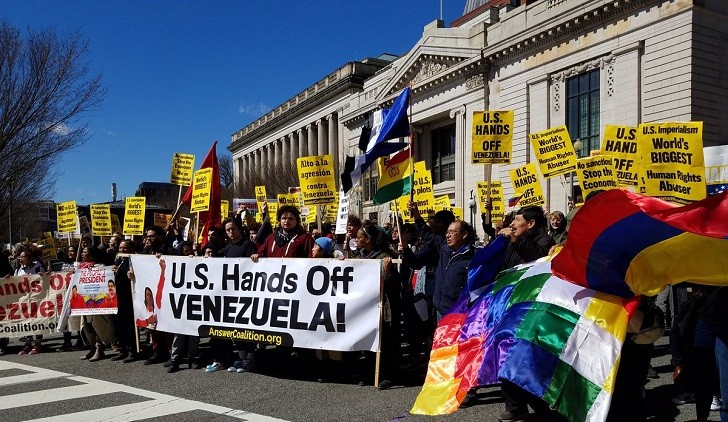 La organización “Actuar ahora para detener la guerra y poner fin al racismo” (ANSWER), una de las convocantes a la movilización rechaza el intento de intervención y las sanciones impuestas a Venezuela que, según afirman, hace sufrir a al pueblo venezolano.