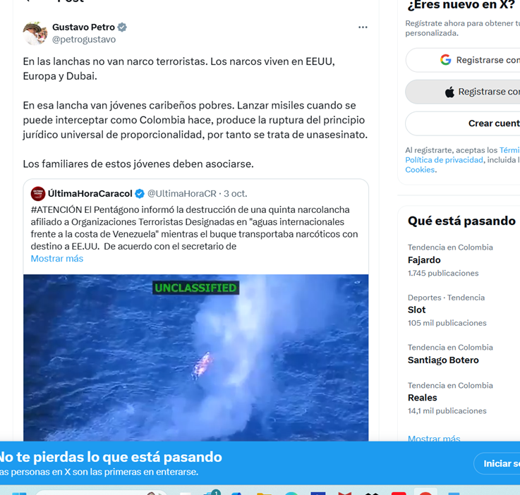 Recojo acá los pronunciamientos del presidente Gustavo Petro en los que condena esta tanda de masacres contra humildes pescadores y migrantes en la Cuenca del Caribe en el marco de la agresión contra Venezuela.